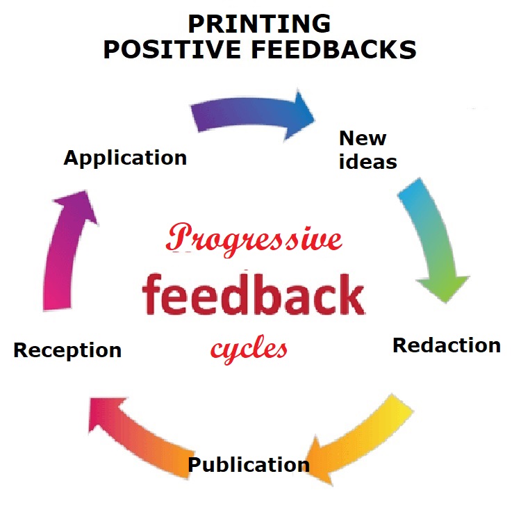 Then civilization, rendered possible by the agricultural revolution, led us to invent the most significant means of communication after language: writing and printing; writing to keep track of what we were doing in space; and later, printing, which allowed the masses to communicate through time. The printing press was significant for civilization because it created a collective process of “positive feedback,” which has become antagonistic to life’s negative feedback: